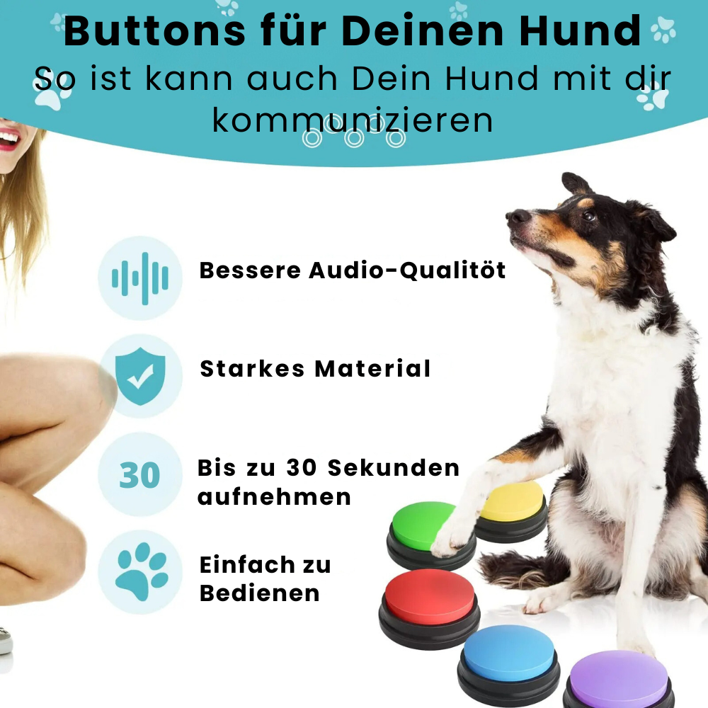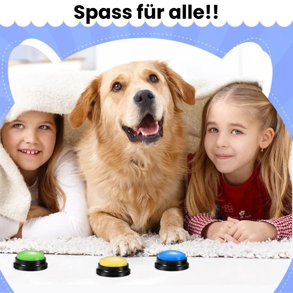 Der PawsPitch ermöglicht es, individuelle Töne auf jedem Gerät aufzunehmen, wodurch eine maßgeschneiderte Lernerfahrung für Dein Haustier entsteht. So kann Dein Haustier auf die jeweilige Farbe tippen, dessen Aktion dahinter ausgeführt werden soll. Als Beispiel, wenn bei Grün "Futter" gespeichert ist und dein Haustier darauf tippt, weisst Du, dass es Hunger hat.